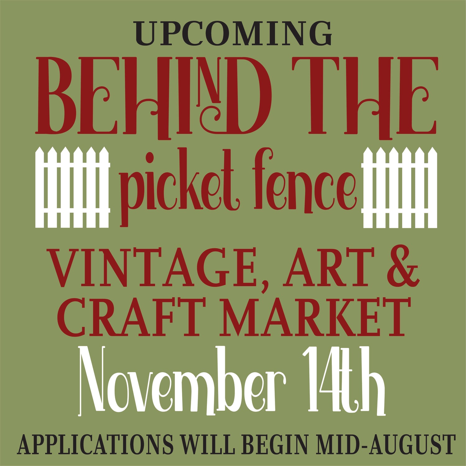 BEHIND THE PICKET FENCE MARKET APPLICATIONS ARE NOW CLOSED